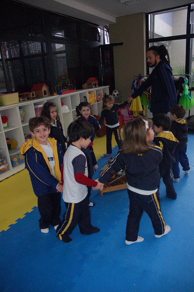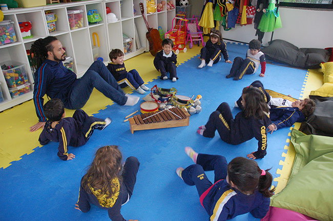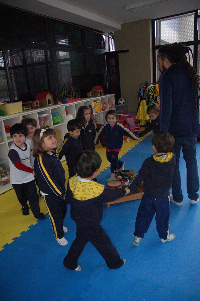 “A musicalização para crianças favorece o desenvolvimento da sensibilidade, da criatividade, do senso rítmico, do prazer de ouvir música, da imaginação, memória, concentração, atenção, do respeito ao próximo, também contribuindo para uma efetiva consciência corporal e de movimentação”, comenta o professor de Música Renato Cardoso Bass, que ministra aulas para os alunos da Educação Infantil e do 1º ano do Ensino Fundamental do Objetivo Paz.