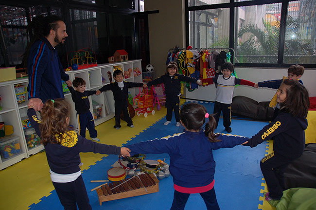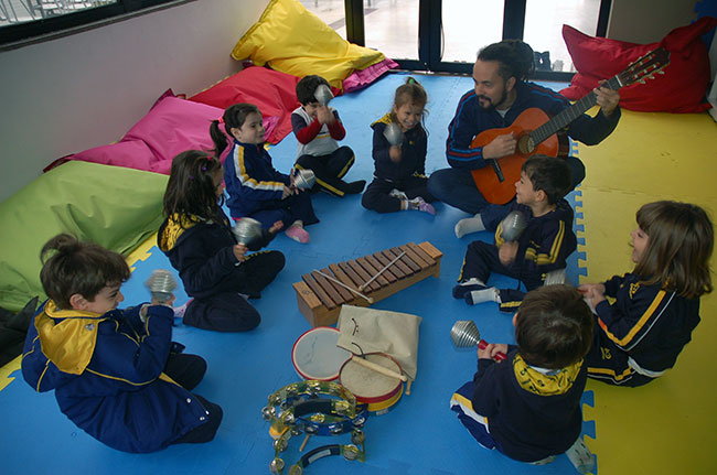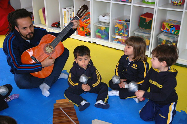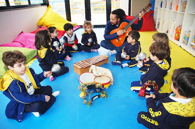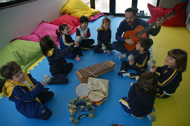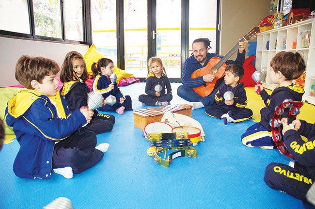 “No âmbito da Educação Infantil, a linguagem musical explora possibilidades de aprendizado em que a criança aprecie, experimente, vivencie e construa. O fazer musical ocorre por meio da criação e da reprodução, que garantem três possibilidades de ação: a interpretação, a improvisação e a composição”, explica Sandra Regina Carulli, coordenadora geral da Educação Infantil e do 1º ano do Ensino Fundamental.